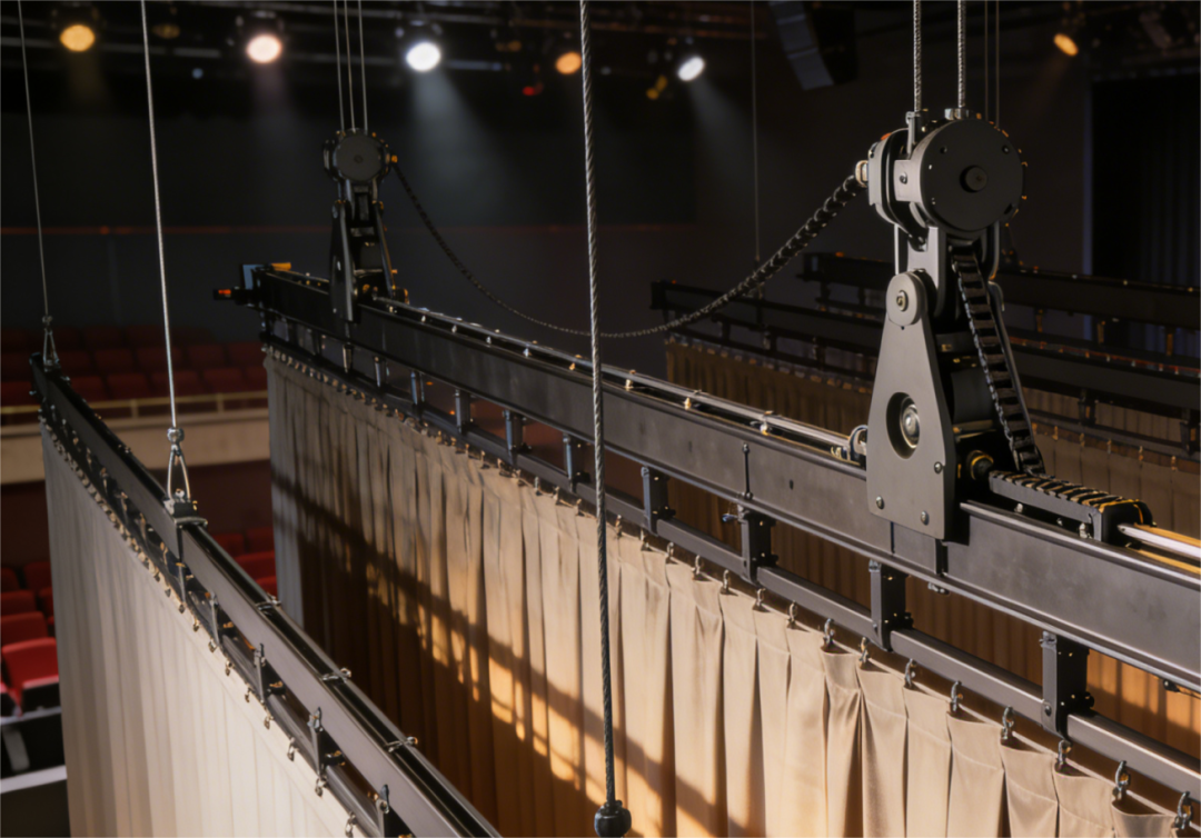 Installed above the stage and parallel to the proscenium can be hidden above the stage when not in use, freeing up stage space. When needed, it descends quickly, enabling precise adjustment of lighting fixture height and angle to meet complex lighting demands. Equipped with overload protection, emergency braking systems, and device locking to prevent accidental descent, ensuring the safety of performers and equipment.