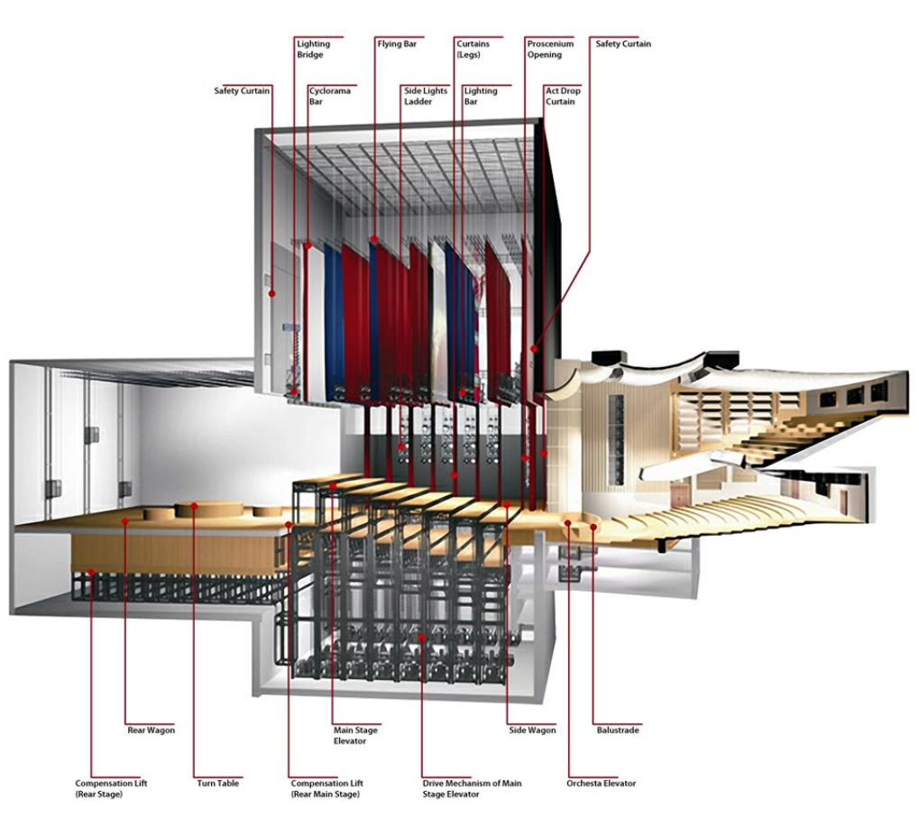 itc stage machinery overall solution leverages modern PROFINET communication, PLC programming, electrical components, and installation accessories for batten lifting and curtain automation. Simultaneously, it integrates stage curtains, lighting, audio, video, rigging, seating, and monitoring systems, making it fully applicable to performance environments in various cultural venues.